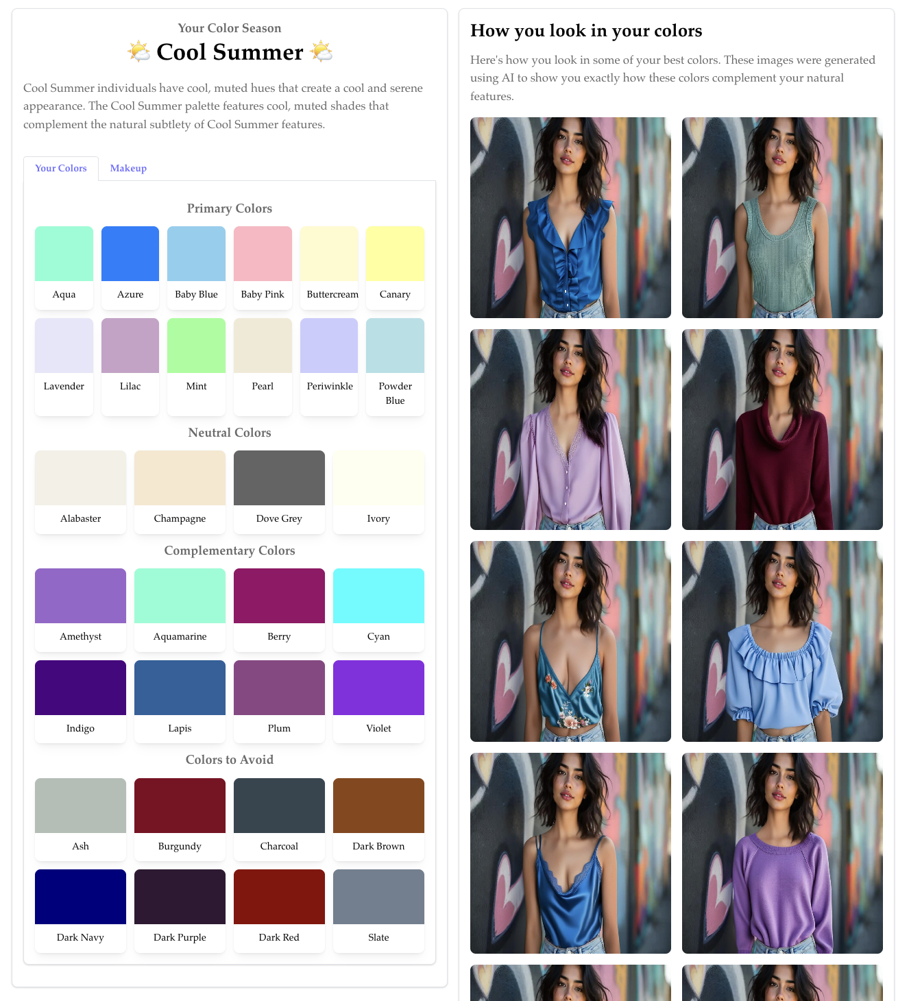 "The outfit previews are insane! Seeing myself in the right colors vs wrong colors was like night and day. Worth every penny."