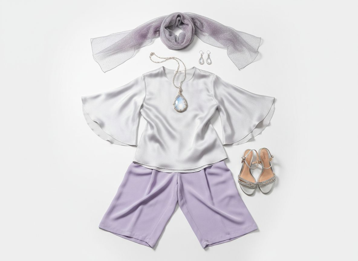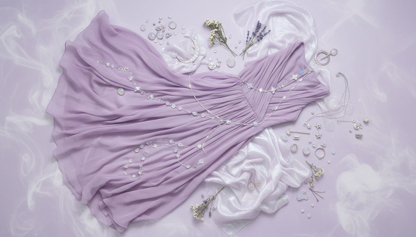 Delicate, symbolic jewelry, Crystal or moonstone pieces, Flowing scarves, Ethereal headpieces, Soft, minimal shoes, Transparent or iridescent bags, Nature-inspired pieces, Mystical symbols